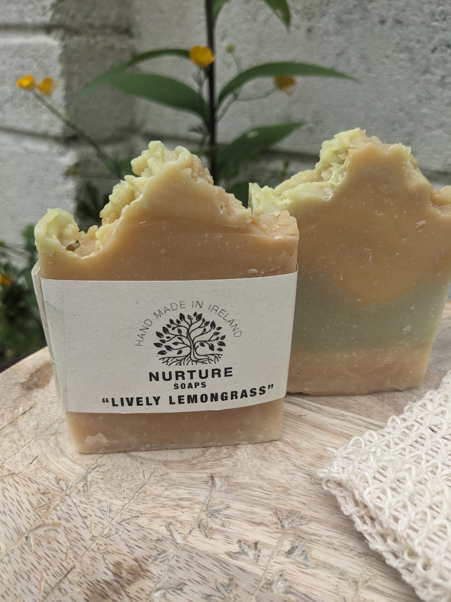 Experience the refreshing and soothing qualities of our Lively Lemongrass natural soap bar.